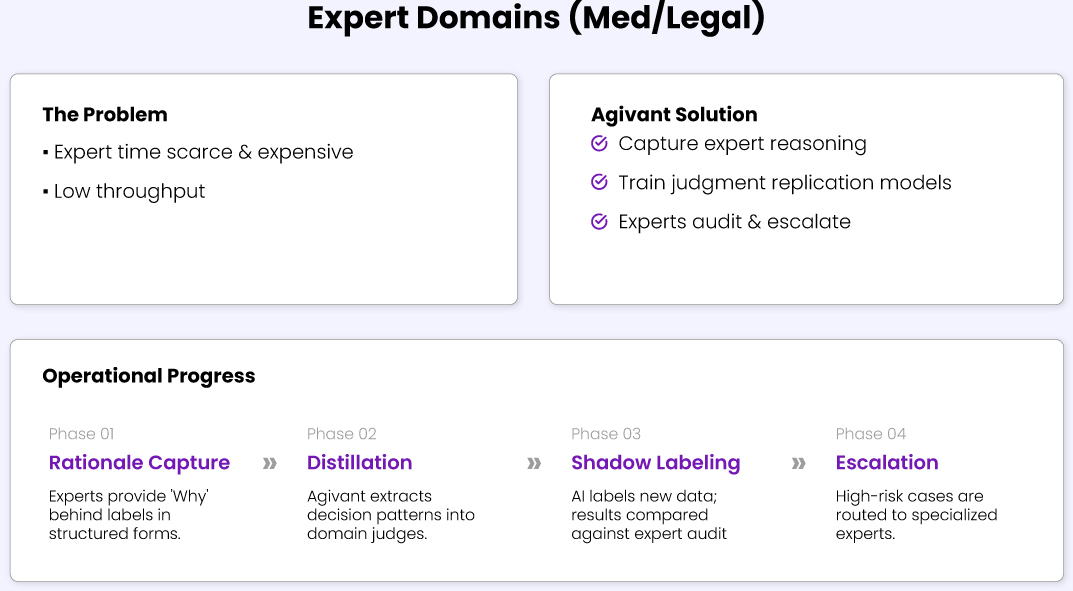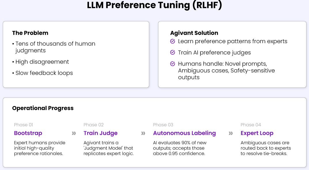 Rapid iteration of large AI models was constrained by slow, human-heavy data annotation pipelines. Each training cycle required tens of thousands of manual labels, delaying experiments, increasing costs, and limiting iteration velocity.